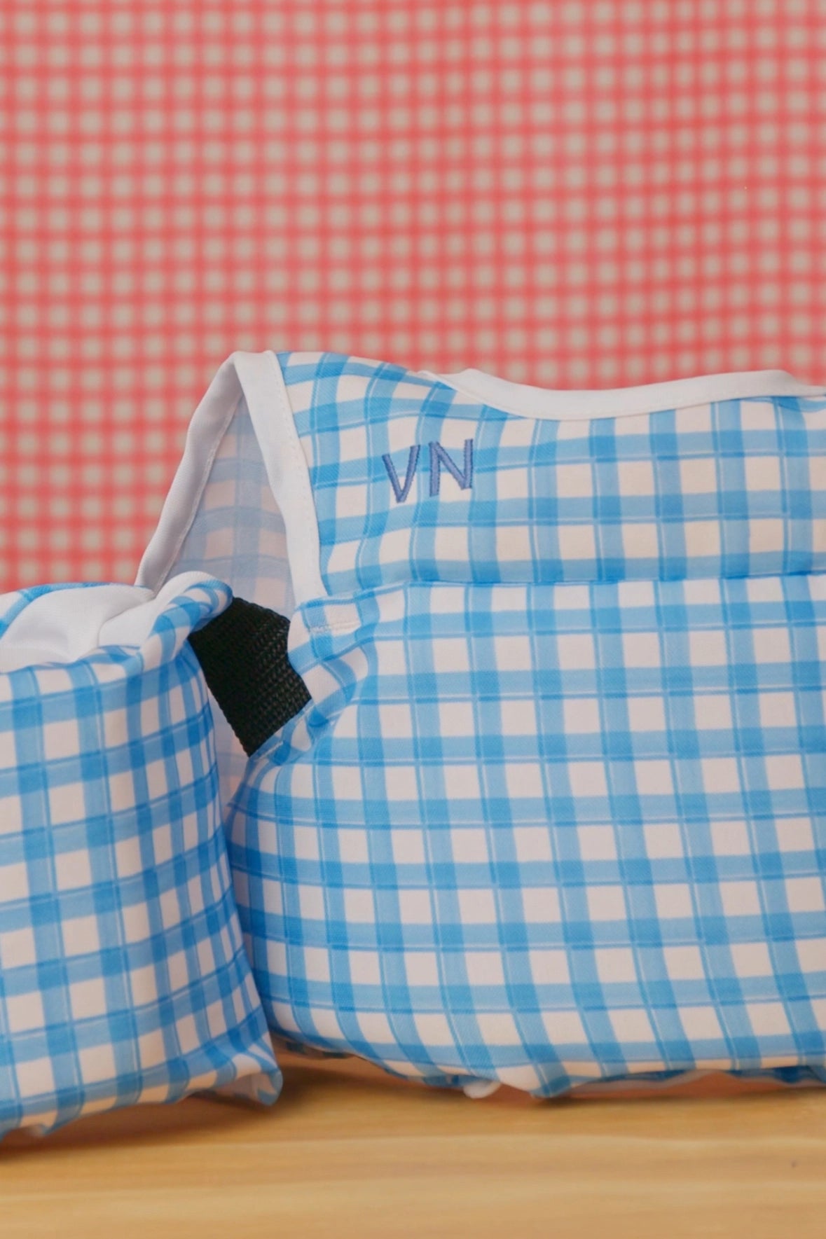 Nossa Boia Colete Salva-Vidas Infantil, é desenvolvida especialmente para crianças, feita com material confortável e resistente, possui boias de braço que garantem a livre movimentação dos bracinhos, com excelente estabilidade e movimentação na água! Muito mais diversão com segurança, pois elas tem alta flutuabilidade! Feito em nossa estampa exclusiva Vichy Azul, é unissex, tamanho único. Recomenda para 1 a 7 anos