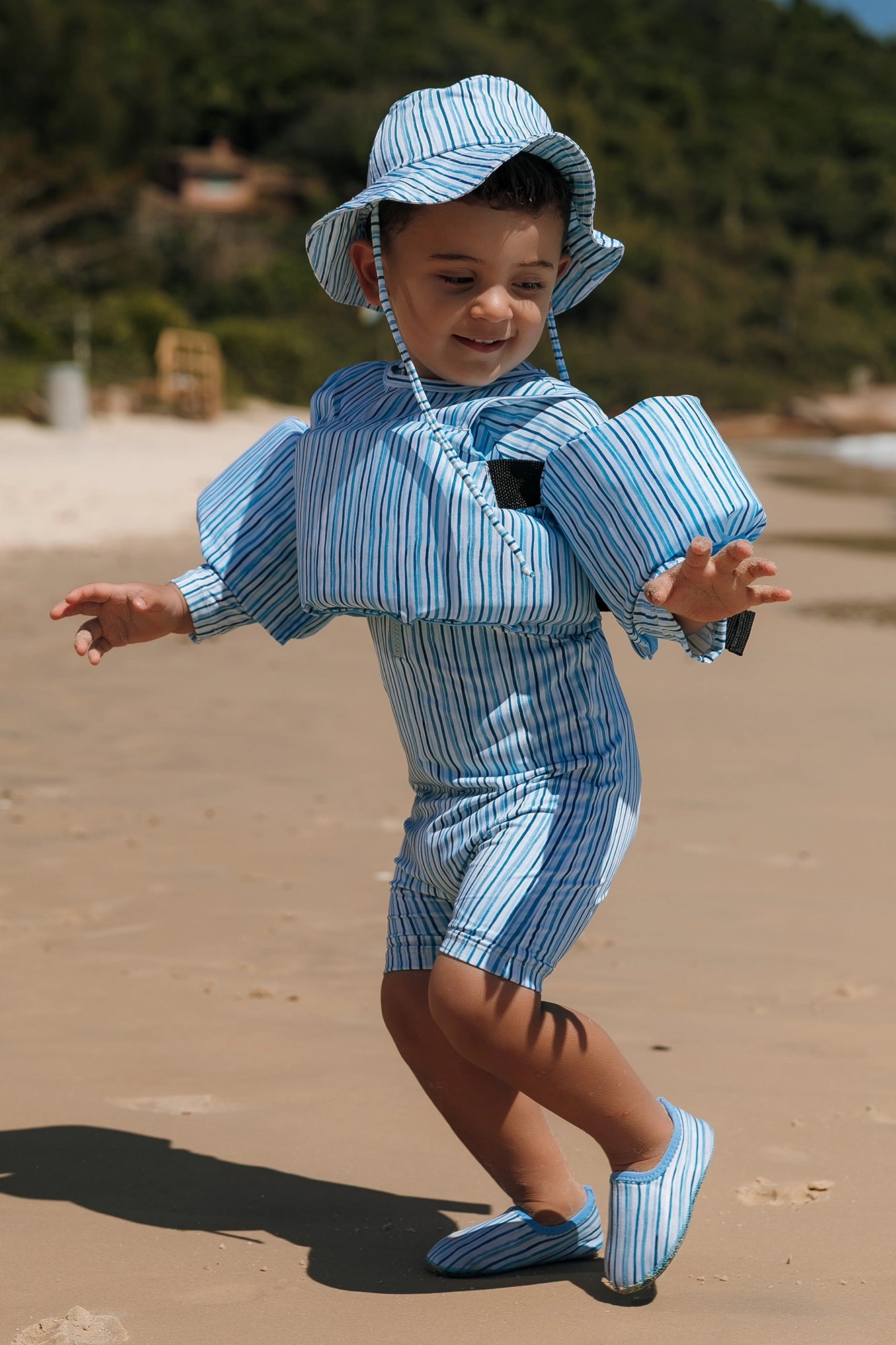 Nossa Boia Colete Salva-Vidas Infantil, é desenvolvida especialmente para crianças, feita com material confortável e resistente, possui boias de braço que garantem a livre movimentação dos bracinhos, com excelente estabilidade e movimentação na água! Muito mais diversão com segurança, pois elas tem alta flutuabilidade! Feito em nossa estampa exclusiva Listras Azul Claro, é unissex, tamanho único. Recomenda para 1 a 7 anos
