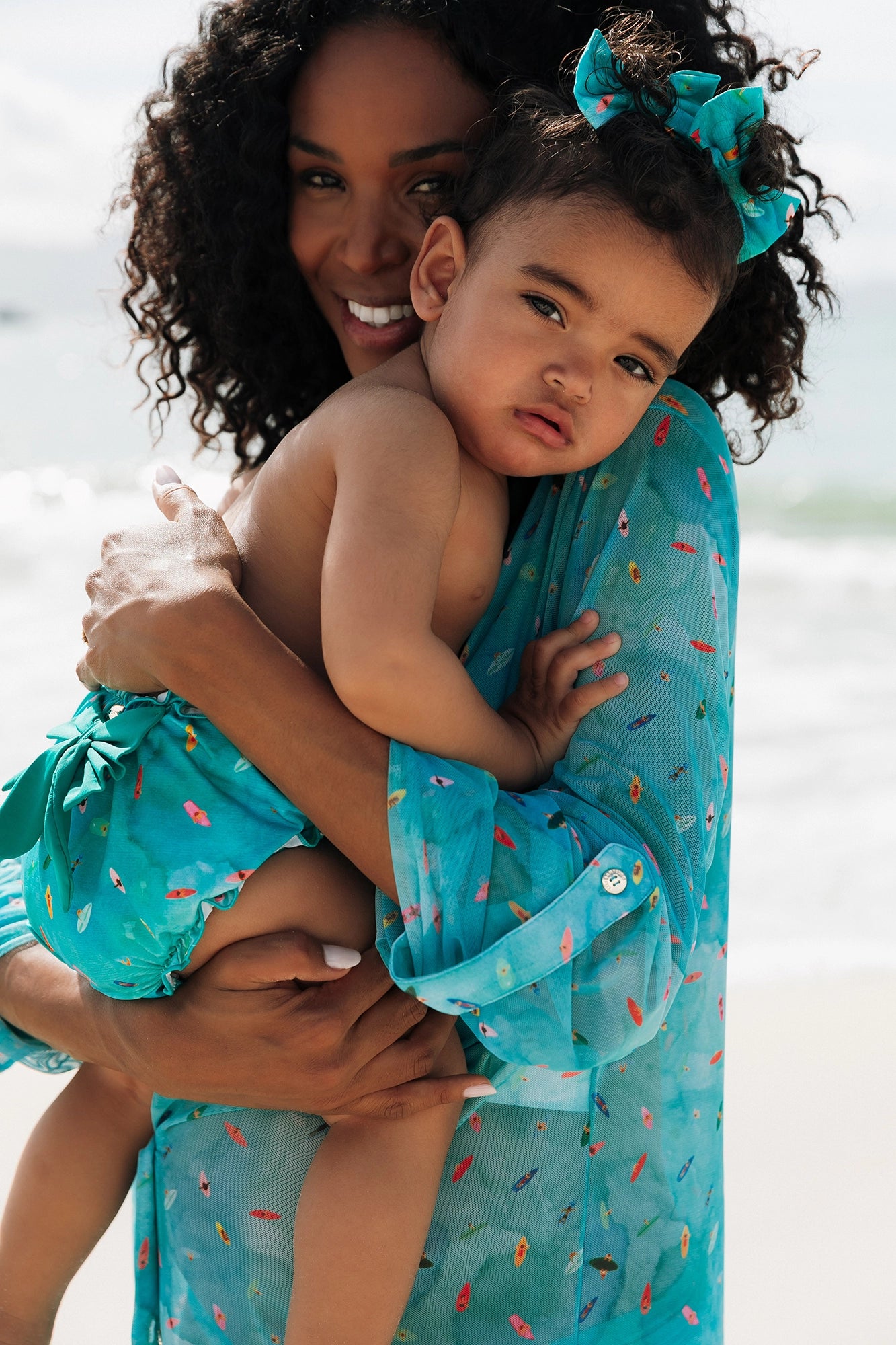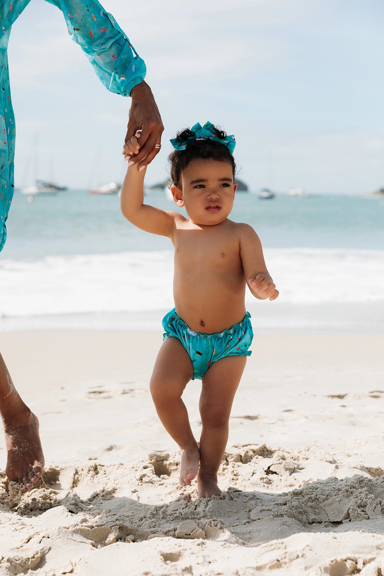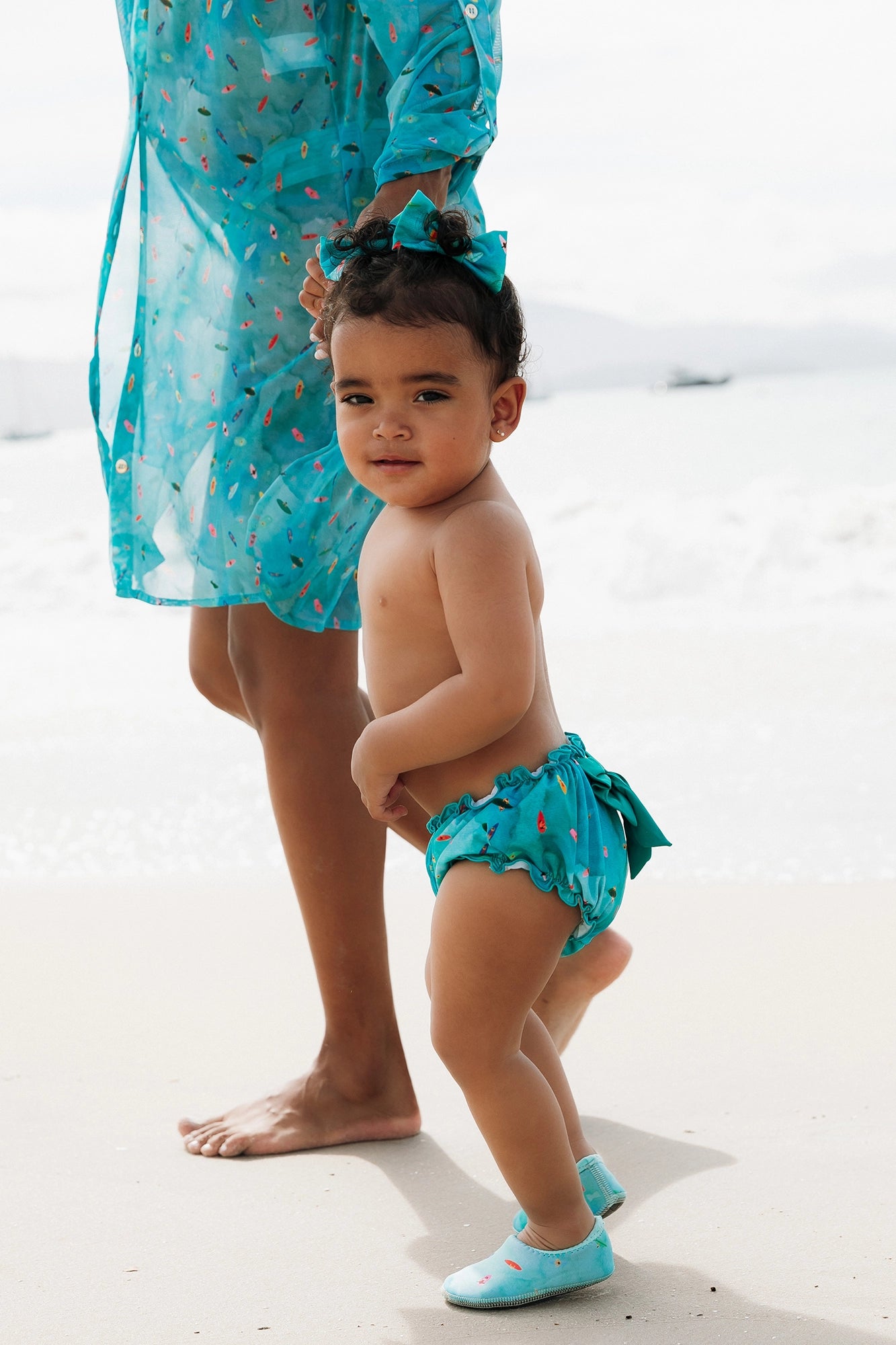 O Tapa Fralda Serena é uma calcinha estilo fralda, essencial para bebês de 0 a 18 meses, garantindo conforto e proteção nos dias de praia. Feito com tecido lycra oferecendo uma sensação suave e flexível, com Proteção UV FPU 50+, perfeita para a pele delicada dos pequenos. Disponível na nossa estampa exclusiva, Mar.