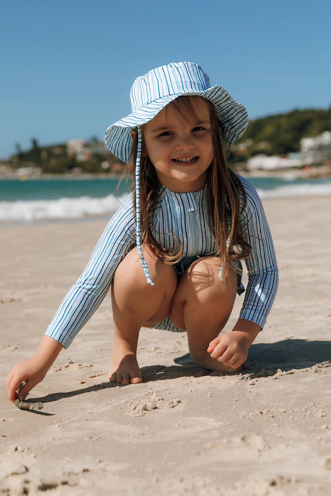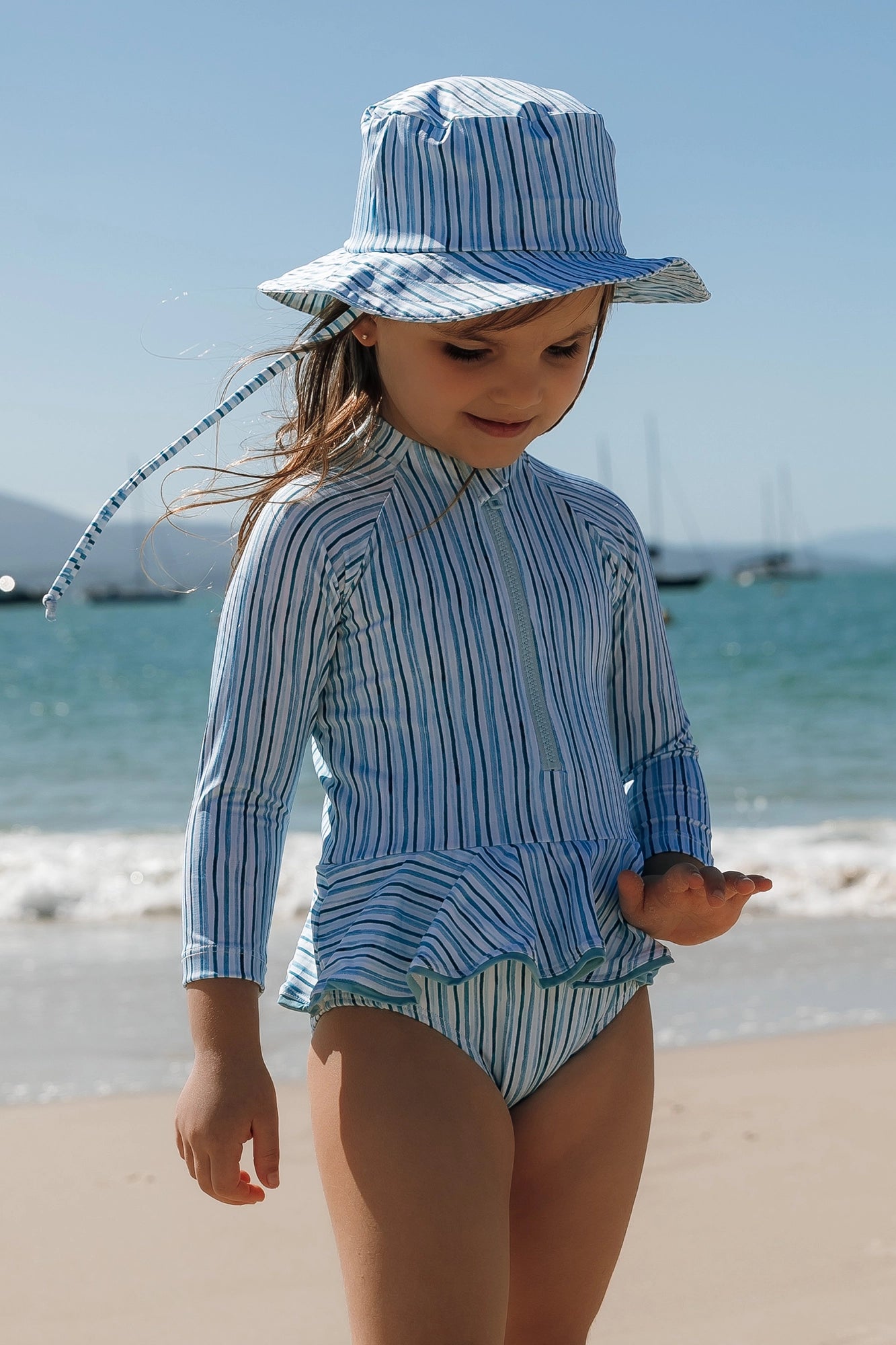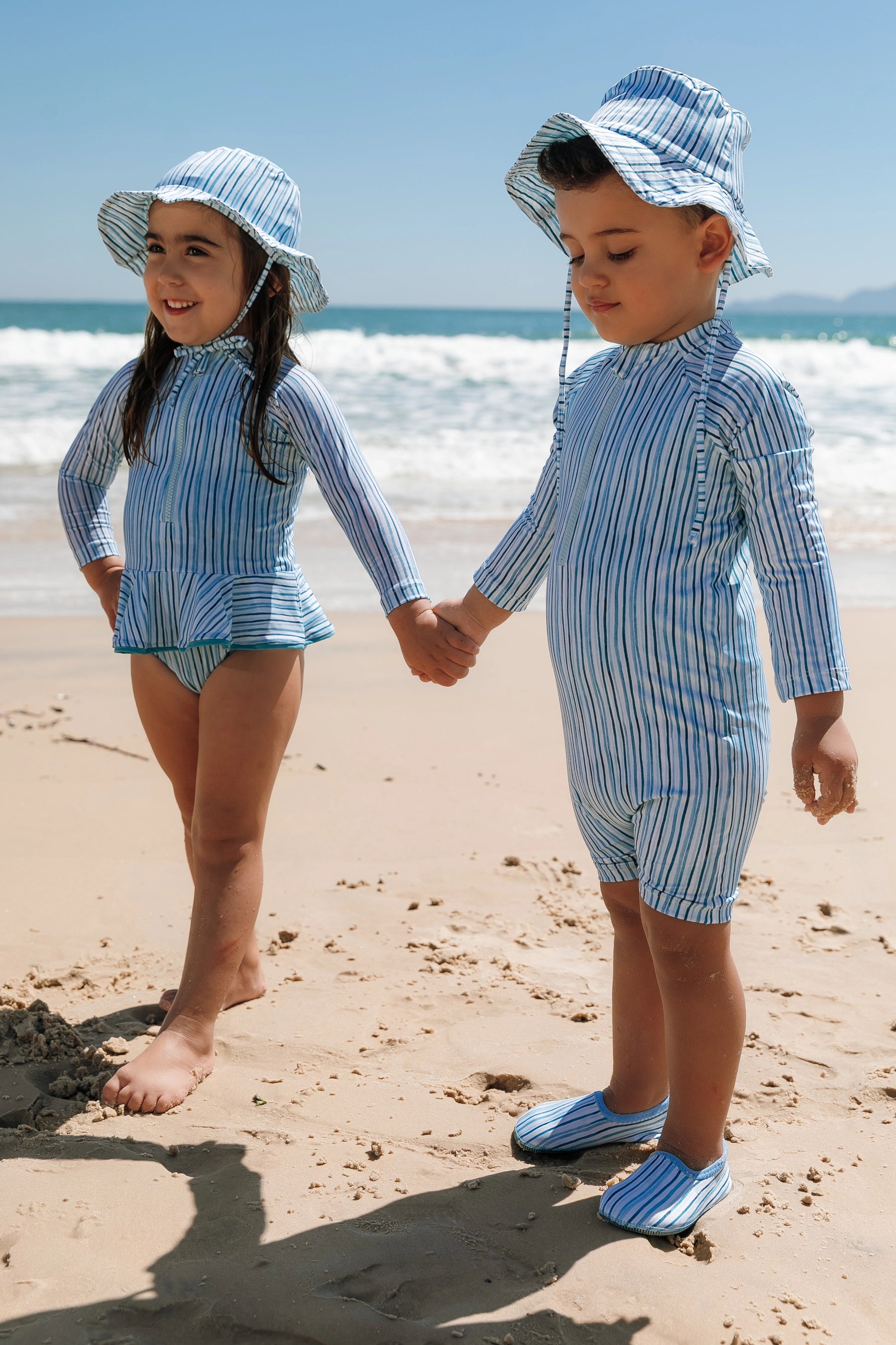O Maiô Tati é um modelo que traz proteção, conforto, praticidade e muito estilo para as crianças! Possui manga longa, zipper na frente na cor azul, e babadinho na cintura. Para as idades de 6 meses a 8 anos. Feito na nossa estampa exclusiva, Listras Azul Claro, com look combinando para a família toda.
