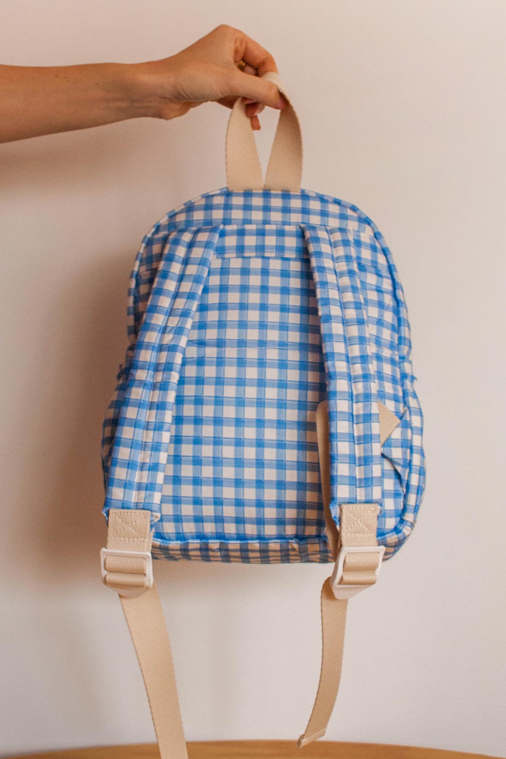 A Mochila infantil estampada é perfeita para acompanhar os pequenos em suas aventuras diárias. Feita com um tecido resistente, possui um compartimento principal espaçoso, bolso frontal com zíper e um detalhe com elástico na lateral para guardar garrafinhas de água, mamadeiras e mais. As alças são ajustáveis para maior conforto. Pode ser usada para escola, passeios na praia ou parque. Feita na estampa exclusiva Vichy Azul, combinando com os looks de praia.