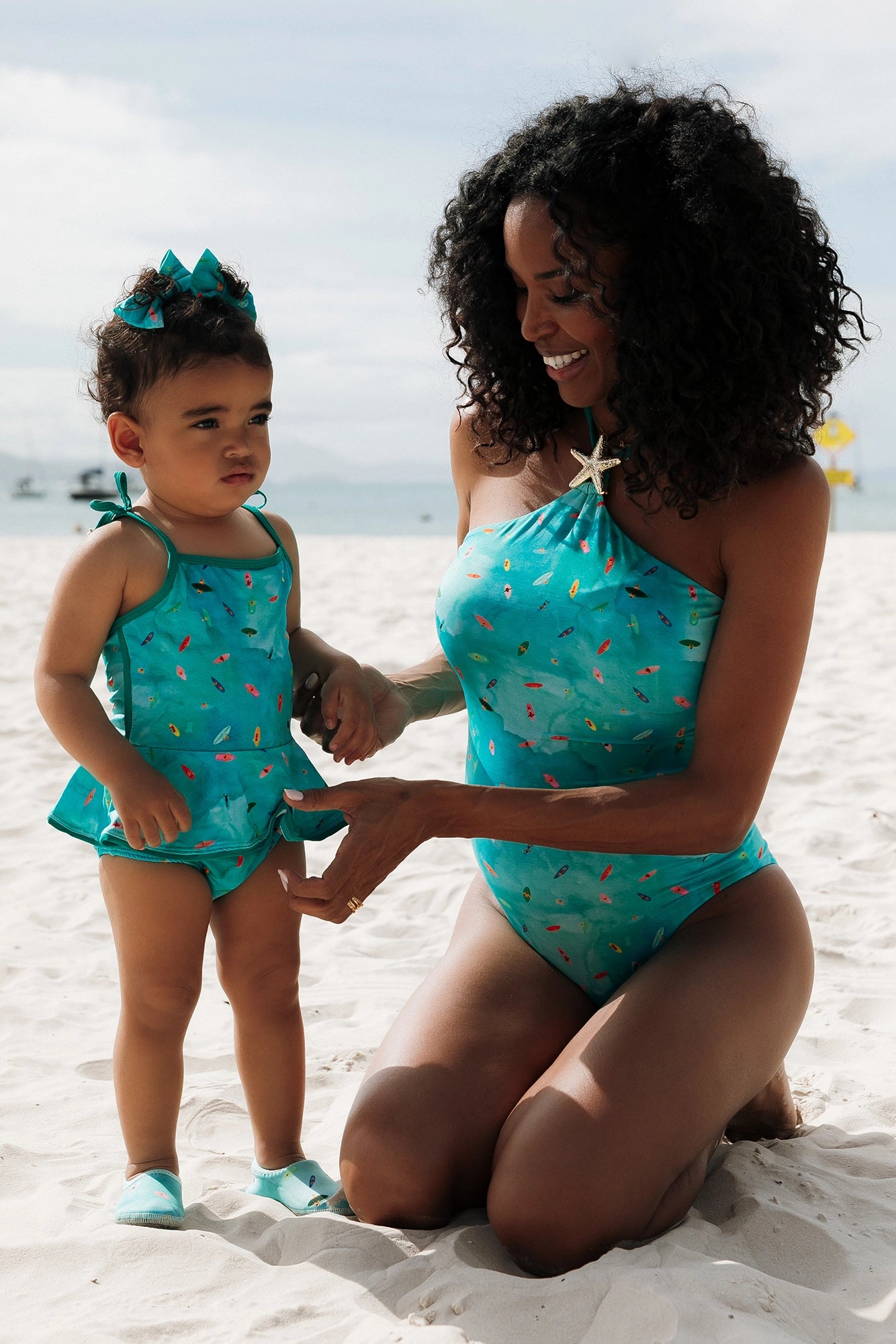 O Maio Vitória é um novo modelo maio frente única e amarração no pescoço. Possui um detalhe de estrela do mar na frente que deixa a peça com um charme pessoal e um detalhe único. Feito na nossa estampa exclusiva, Mar.