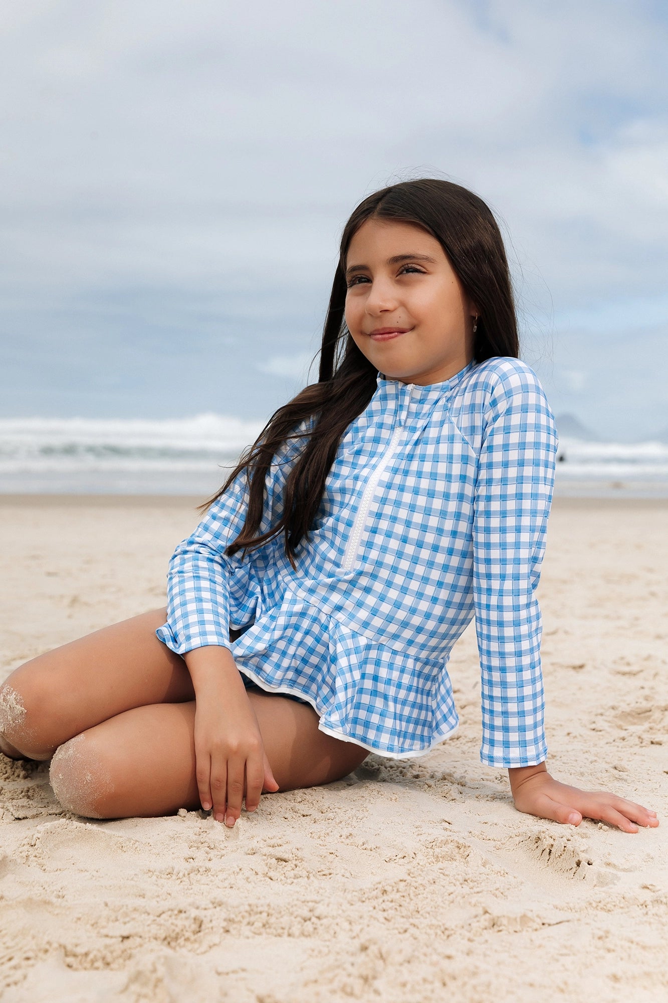 Maiozinho de manga longa com zíper e proteção UV Vichy Azul da Lili Sampedro