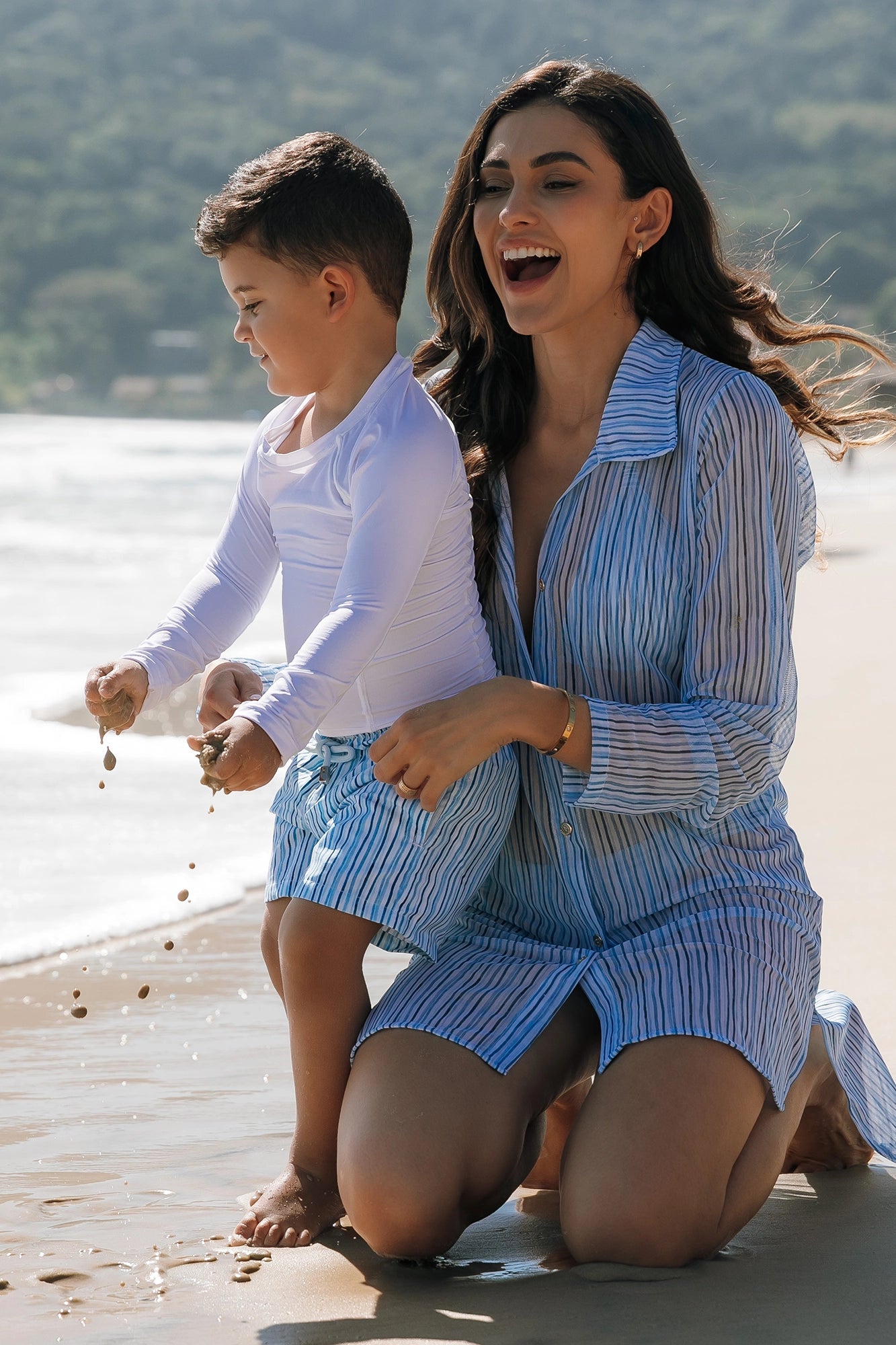 A Camiseta de Praia Infantil com Proteção UV FPU 50+ da Lili é ideal para as crianças brincarem sob o sol, dentro e fora d’água. A Camiseta tem mangas longas para maior proteção, pode ser usada por cima do maiô ou biquíni, ou sozinha com o short infantil, tapa fralda ou sunguinha. Uma peça chave no look de praia infantil. Feita na cor Branca para combinar com nossas estampas exclusivas.