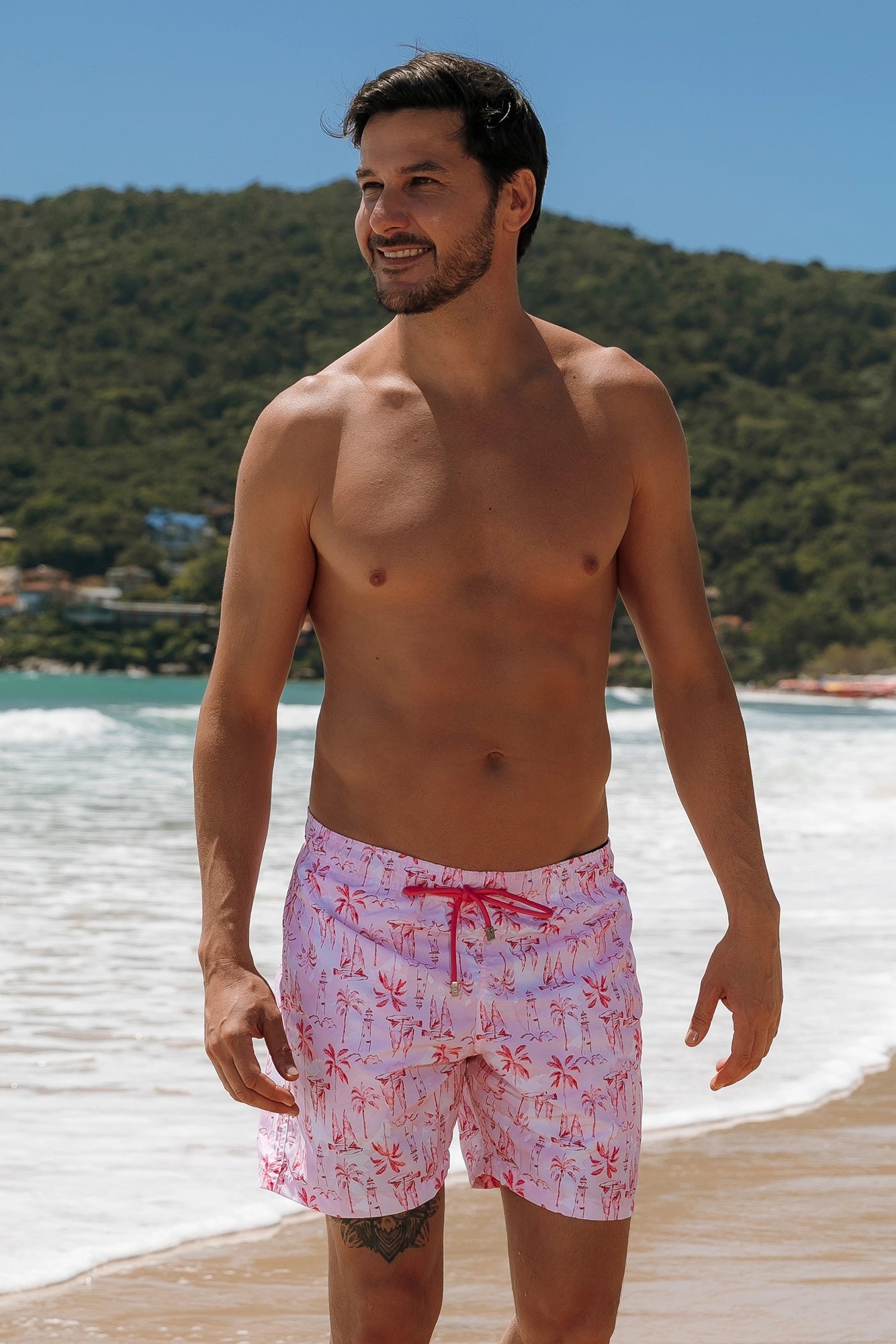 O Short Masculino é um modelo clássico de praia, tem cós de elástico ajustável por cordão, bolsos frontais, bolso posterior com fechamento por velcro. Feito na estampa exclusiva, Veleiros, combinando para toda a família.